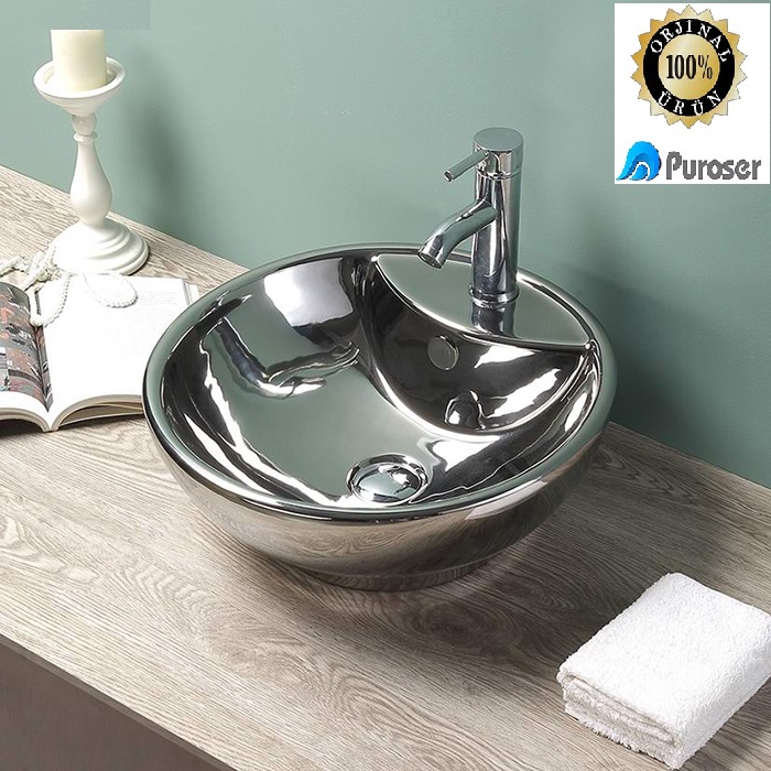 Puroser Demre Gümüş Tezgah Üstü Çanak Lavabo