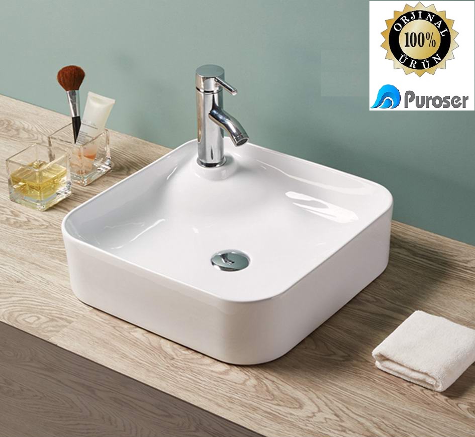 Puroser Gökceada Kare Tezgah üstü Çanak Lavabo