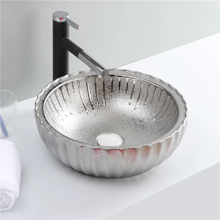 Puroser Luvia Yuvarlak Gümüş Tezgah Üstü Seramik Lavabo