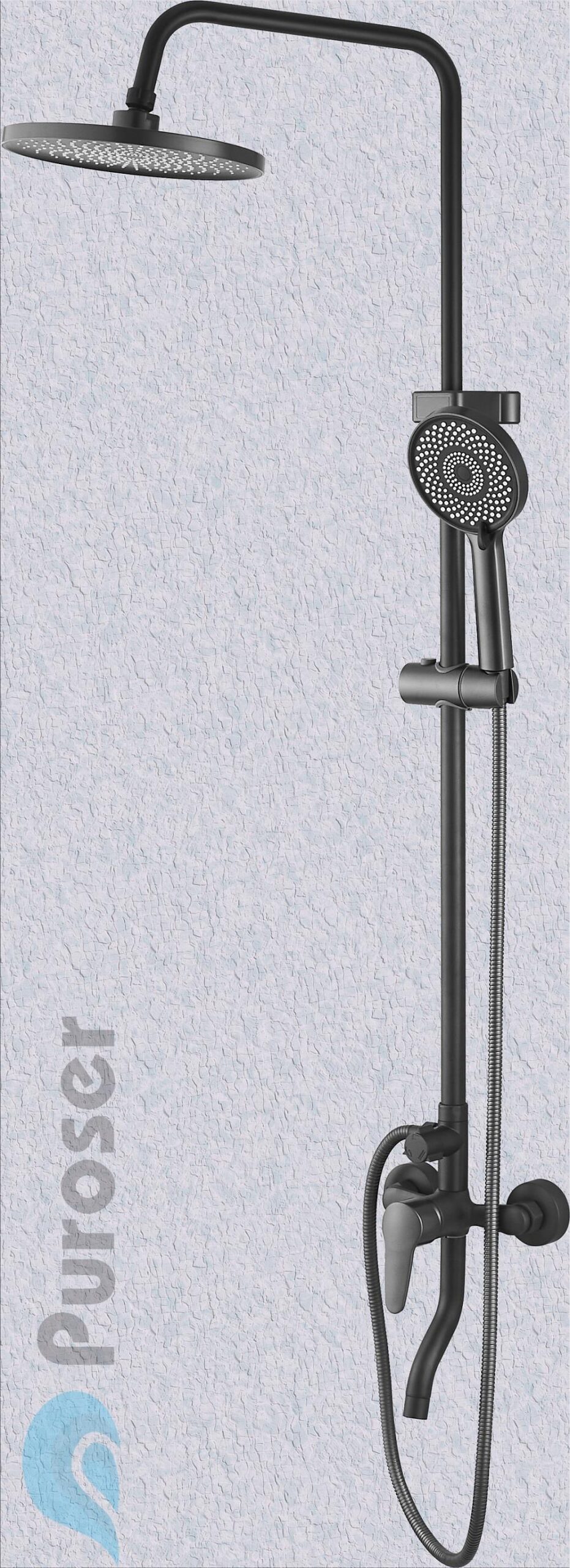 Puroser Robot Duş Tepe Yağmur 3 Fonksiyonlu Batarya Dahil Siyah Duş Seti